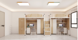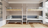公寓書桌床: 1、公寓床架: (1)雙人位公寓床,尺寸長4500mm,寬900mm,高2100mm。 (2)床立柱:采用正六邊形無縫鋼管,直徑65mm(±...點擊詳情